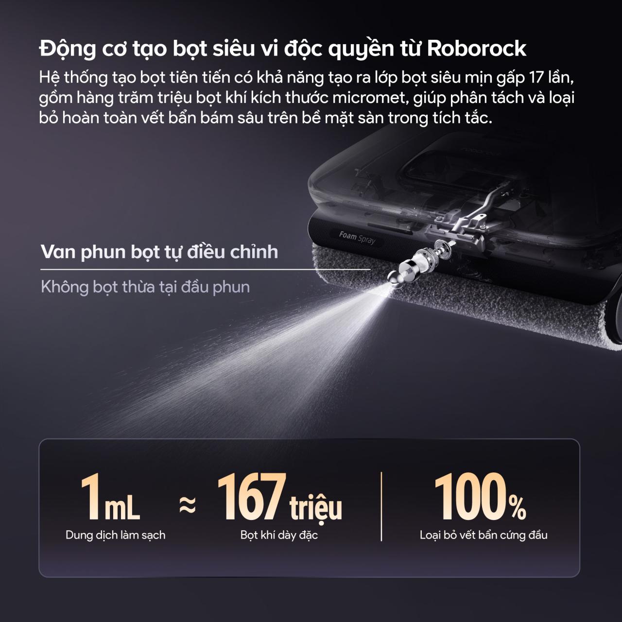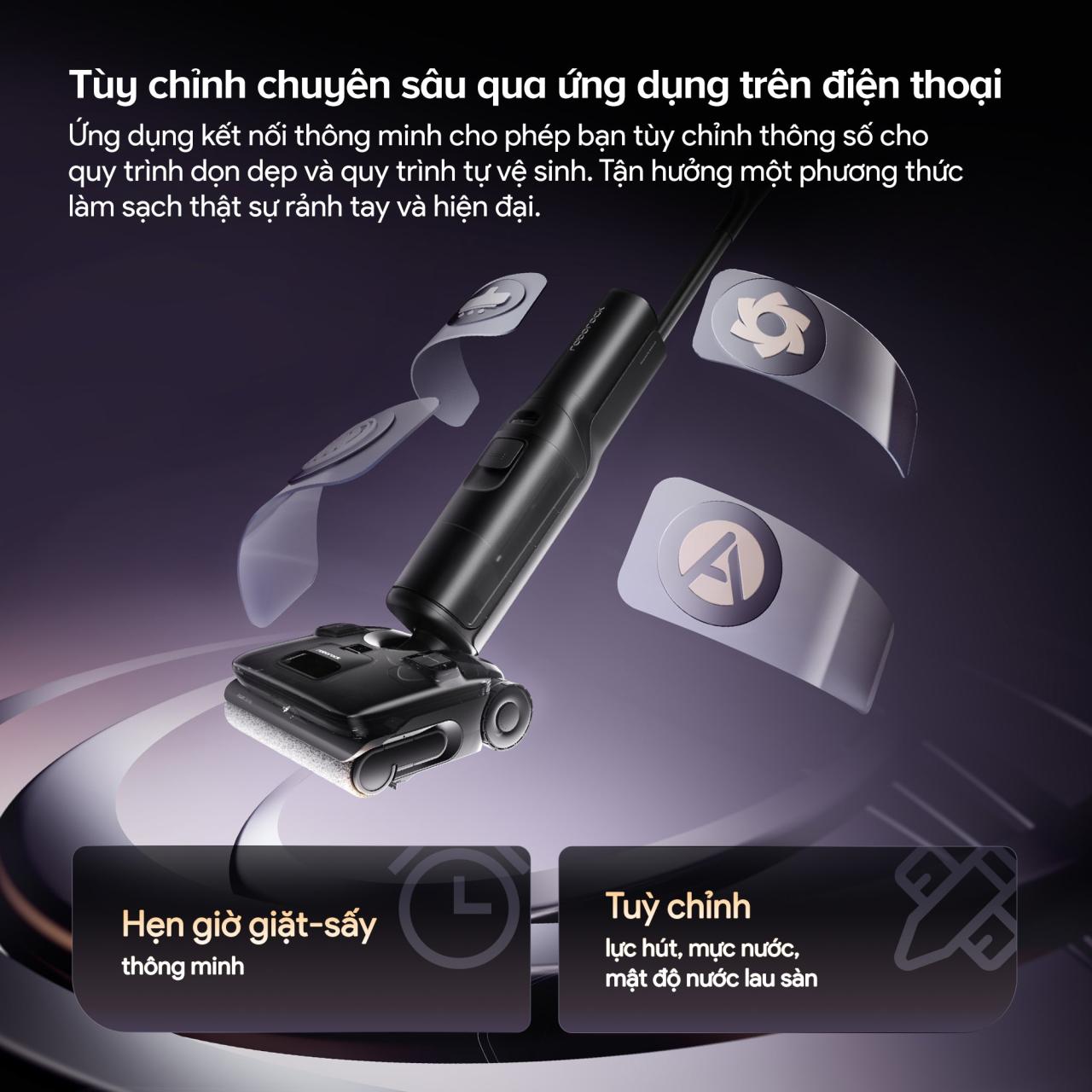 Roborock F25 ACE Pro được trang bị lực hút 25.000Pa, dễ dàng hút sạch bụi bẩn, tóc rối và mảnh vụn chỉ trong một lần lướt. Công nghệ phun bọt kết hợp hệ thống chống rối tóc, giúp làm sạch sâu từng góc sàn. Thiết kế gập linh hoạt 180° cho phép máy len lỏi dưới gầm bàn, ghế, giường, cùng khả năng tự giặt – sấy con lăn 95°C giữ con lăn luôn sạch khuẩn. Hỗ trợ điều khiển qua ứng dụng, F25 ACE Pro là lựa chọn lý tưởng cho ngôi nhà hiện đại, sạch sáng mỗi ngày.