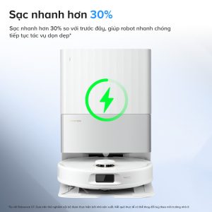 Sạc nhanh hơn 30% so với trước đây, giúp robot nhanh chóng tiếp tục tác vụ dọn dẹp