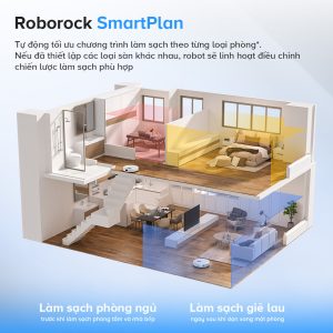 Tự động tối ưu chương trình làm sạch theo từng loại phòng*. Nếu đã thiết lập các loại sàn khác nhau, robot sẽ linh hoạt điều chỉnh chiến lược làm sạch phù hợp.