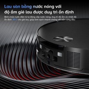 Bình chứa nước điện tử tự động cấp nước nóng, duy trì độ ẩm và nhiệt độ ổn định 70°C cho giẻ lau, giúp làm sạch vết bẩn cứng đầu