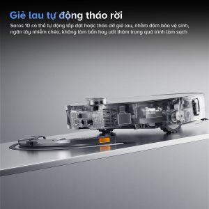 Saros 10 có thể tự động lắp đặt hoặc tháo dỡ giẻ lau, nhằm đảm bảo vệ sinh, ngăn lây nhiễm chéo, không làm bẩn hay ướt thảm trong quá trình làm sạch
